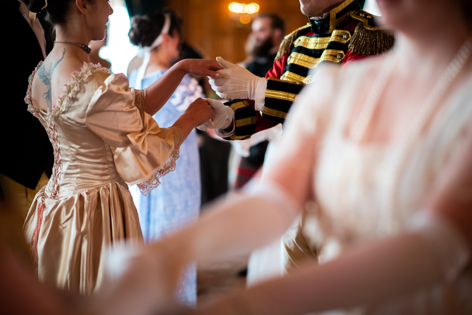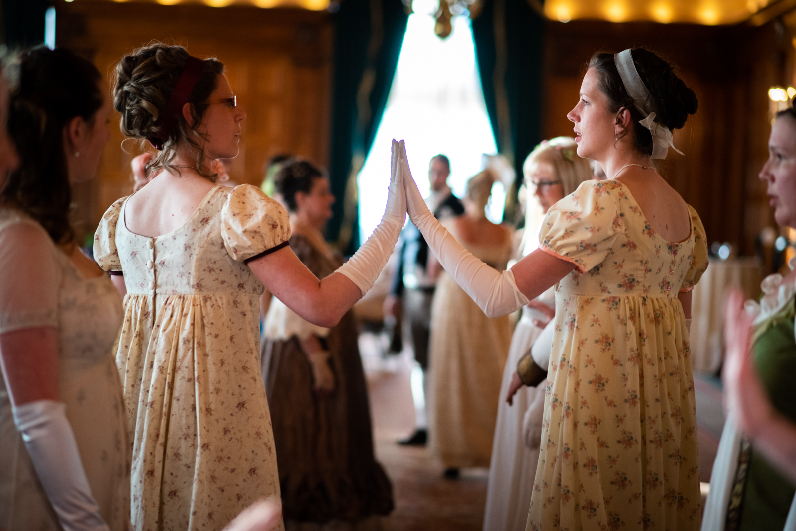 At the Pride & Prejudice Ball (Winnipeg), we do a type of dance particular to the early 1800’s called English Country Dance. It’s easy and fun for people of all ages.